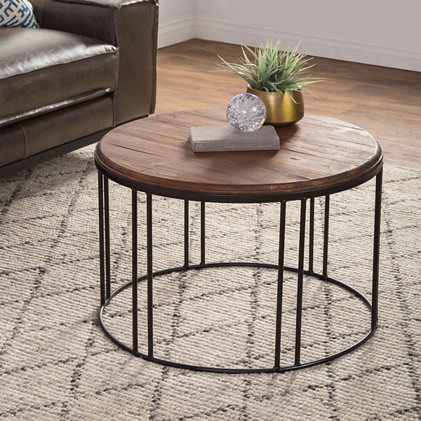 Round Wooden And Metal Baldwin Coffee Table Kirklands